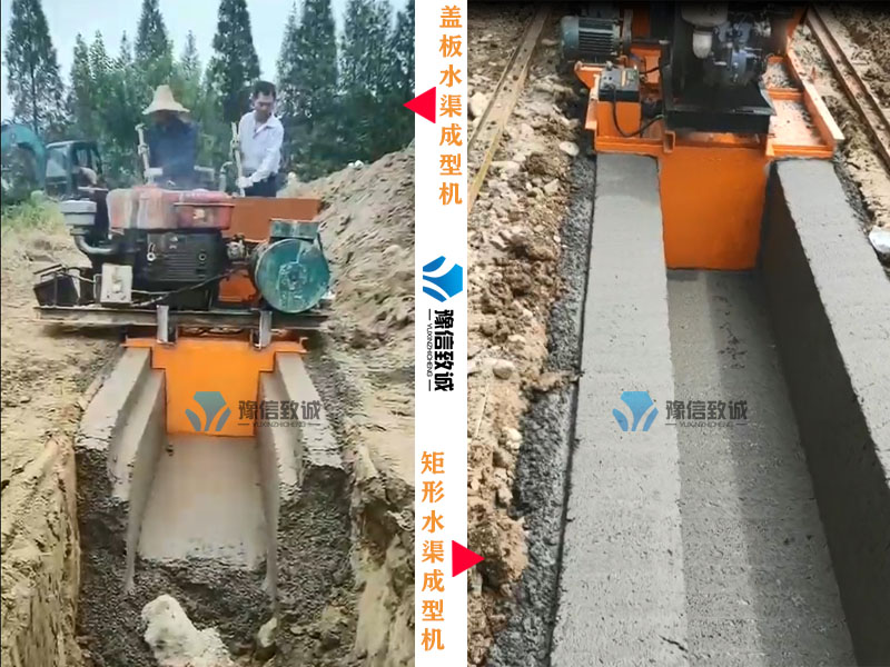 下面我們一起來看在這臺(tái)蓋板槽水渠滑模機(jī)的工作視頻。